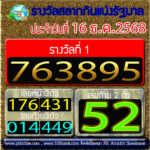 ตรวจสลากกินแบ่งรัฐบาล *วันที่ 16 ธ.ค. 2568