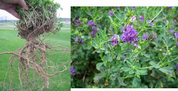 อัลฟัลฟา (Alfalfa) มีระบบรากที่มหัศจรรย์มาก โดยสามารถชอนไชลงไปได้ลึกกว่า 130 ฟุต จึงมีประสิทธิภาพในการดูดซึมธาตุอาหารได้มากกว่าและบริสุทธิ์กว่า โดยไม่สะสมสารพิษ