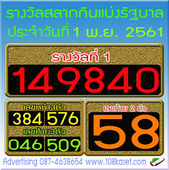 ตรวจหวย//งวดประจำวันที่ 1 พฤศจิกายน 2561 ASuwan 7 ปี ago . ตรวจหวย…งวดประจำวันที่ 1 พฤศจิกายน 2561 คลิ๊ก..ตรวจทุกรางวัล <<
