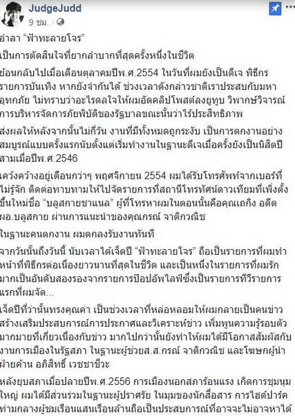 ทั้งนี้ ตนยืนยันว่าไม่มีความเป็นกลางอยู่จริงในวงการสื่อมวลชน ตนไม่ได้นิยมพรรคใดพรรคหนึ่ง หรือระบอบใดระบอบหนึ่ง ตนนิยมในตัวปัจเจกบุคคลมากกว่า ไม่ว่าจะจัดรายการที่ไหน ตนจะทำทุกทางเพื่อสนับสนุนให้คนดีมีอำนาจ ควบคุมคนชั่วไม่ให้มากอบโกย และจะกำจัดขยะในวงการสื่อ.