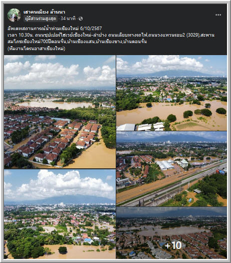 รวมสถานการณ์น้ำท่วมเชียงใหม่ล่าสุด 09.00น. 6ตค.67“น้ำปิง” เริ่มลด P. 1 สะพานนวรัตน์ลดลงเหลือ 4.95เมตร แต่ยังอยู่ในระยะวิกฤตสีแดง