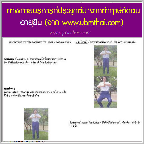 ภาพกายบริหารที่ประยุกต์มาจากท่าฤาษีดัดตน ดำรงกายอายุยืน (จาก www.ubmthai.com) ภาพกระบวนท่าแก้ปวดหลัง ได้ผล!!