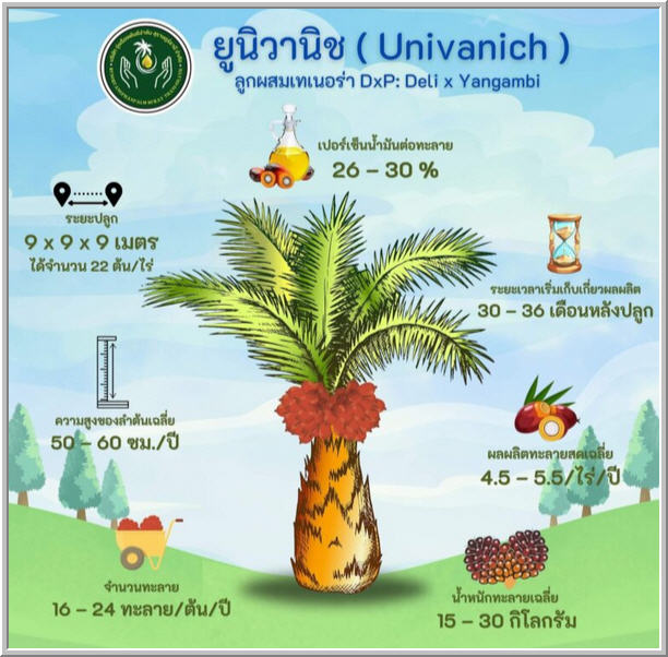 ข้อมูลเพิ่มเติมพันธุ์ปาล์ม ยูนิวานิช ดังนี้