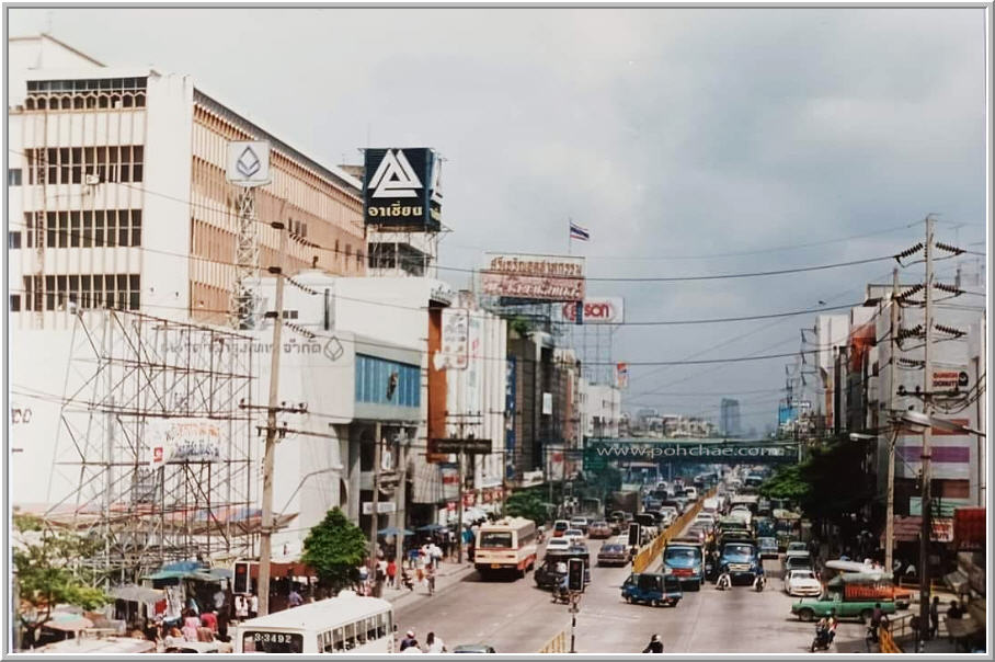 △ภาพห้างอาเซี่ยนดีพาร์ทเมนท์สโตร์ ตึกสีชมพูด้านหลังคือโรงภาพยนตร์พระโขนงเธียเตอร์ ด้านขวาของภาพคือปากซอยสุขุมวิท 71 (ปรีดีพนมยงค์) ซึ่งมีร้านดังกิ้นโดนัท อยู่ตรงหัวมุมปากซอย ภาพถ่ายเมื่อปีพ.ศ. 2531