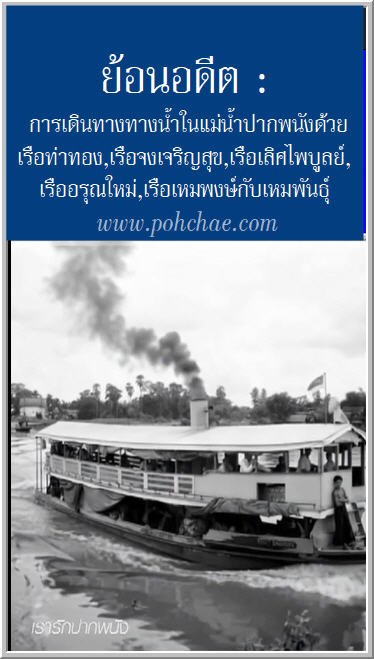#ยุคแรกเรือสองชั้น เรือท่าทอง1,2,3 แล่นระหว่างปากพนัง-หัวไทร ,เรือจงเจริญสุข,เรือเลิศไพบูลย์1-5และเรืออรุณใหม่ของเจ๊กิ้มเจ้ง อรุณสกุล คนขับเรือคือโก้เด้งปัจจุบันอายุ80ปีกว่าแล้ว เรือเหล่านี้แล่นระหว่างปากพนัง-ชะอวด