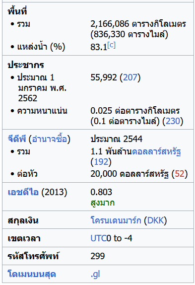 กรีนแลนด์ หรือ กะลาลิตนูนาต เป็นดินแดนทางเหนือสุดของโลก ตั้งอยู่ในมหาสมุทรอาร์กติกและเป็นเกาะที่ใหญ่ที่สุดในโลก มีพื้นที่ประมาณ 2,175,900 ตารางกิโลเมตร มีฐานะเป็นดินแดนปกครองตนเองของประเทศเดนมาร์ก ตั้งแต่ปี พ.ศ. 2499 วิกิพีเดีย