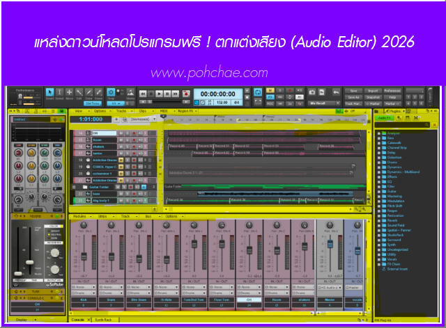 จุดเด่น: รองรับเครื่องดนตรีจำลอง (VST), มิกซ์เสียงได้ไม่จำกัดแทร็ก และมีเครื่องมือระดับสตูดิโอ